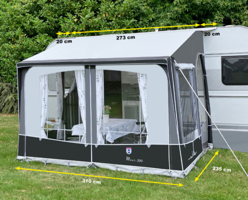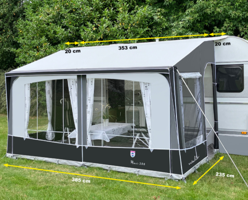 La tente partielle Maxi est disponible en 2 versions : Maxi 300 et Maxi 380.